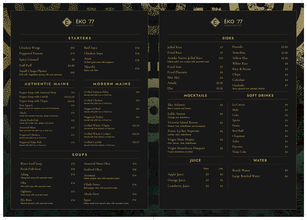 The menu features a selection of authentic mains such as the richly spiced Pepper Soup, available with assorted meat, catfish, or tilapia, ensuring a delight for every palate. For those seeking something different, the Ewa Agoyin and Abula provide unique flavour profiles that are sure to impress.